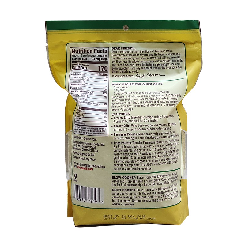 Grits Nutrition Facts Label - Cully's Kitchen A grits nutrition facts label will also help you determine how much iron is present in a grits food. Some Best Grits Here are some best grits: Palmetto Farms Grits Stone Ground White Features Highest Quality Non-GMO Corn Naturally, Gluten Free, Produced in a Wheat Free Facility Real Stone Ground Grits - Smooth, Delicious, Full of Flavor, Creamy