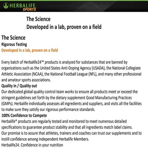 PDF Quality @ Herbalife Nutrition For all Herbalife Nutrition products produced globally, Quality protocols and food safety requirements are standardized for all regions. The first priority is Quality. It is ... on the label is in the product, what is in the product is good for you and What ingredients are used meet rigorous Quality and Safety standards. Title: DS Guideline