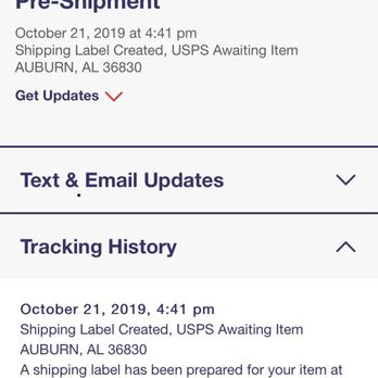 Shipping Label Created, USPS Awaiting Item - eBay When checking the tracking info it says " Shipping Label Created, USPS Awaiting Item". Almost two weeks later the tracking info finally says "Accepted at USPS Origin Facility". The buyers assume that I waited 12 days to mail their item. I don't blame them for being upset.
