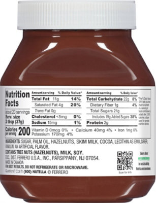 Nutella Nutrition Facts: The Sweet Truth About Your Favorite Spread ... Nutella contains around 7.4% cocoa, which means that it provides some of the health benefits associated with cocoa. Vitamins and Minerals Nutella contains some vitamins and minerals, including iron, calcium, and vitamin E. However, the amounts are relatively small, and Nutella should not be relied on as a source of essential nutrients. 16 Nutella nutrition facts - Everyday Dieting Nutella is a creamy, chocolatey spread made from ground hazelnuts and cocoa powder. It is rich in nutrients, including vitamins B6 and E, minerals such as calcium and magnesium, and dietary fiber. The rich source of vitamin B6 and E can help support nerve function and energy levels, while calcium and magnesium can help maintain bone health. Nutella Nutrition Facts: What's Really In It | BODi - The Beachbody Blog Nutella Nutrition Facts A serving of Nutella (two tablespoons) contains 200 calories, 12 grams fat, 4 grams saturated fat, 15 milligrams sodium, 23 grams carbohydrates, 21 grams sugars, and 2 grams of protein.