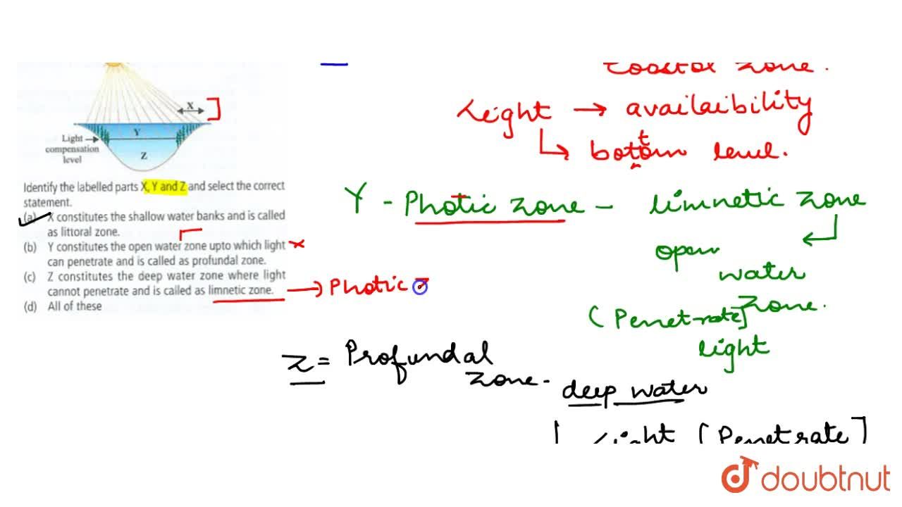 3.4 Aquatic Biomes | Environmental Biology - Lumen Learning The benthic zone extends along the ocean bottom from the shoreline to the deepest parts of the ocean floor. Within the pelagic realm is the photic zone, which is the portion of the ocean that light can penetrate (approximately 200 m or 650 ft). At depths greater than 200 m, light cannot penetrate; thus, this is referred to as the aphotic zone 3.3.5 biology practice.pdf - 1. Draw a lake and label the photic ... Draw a lake and label the photic, aphotic, littoral, limnetic, and benthic zones. (1 point) 2. Why do overlapping niches lead to competition? (1 point) Because resources are limited Because resources are limited 3. After an extreme disturbance, what kind of organisms move into the area first? (1 point) Plants Plants 4. Solved 3. In the lake cross-section below, first determine - Chegg In the lake cross-section below, first determine and draw in the approximate location of Zeuthen label the following zones: euphotic, aphotic, profundal, littoral, limnetic, pelagic, benthic. (4 pts) secchi depth = 3.0m 4. Assuming this lake has the following characteristics, calculate: (a) lake volume (m"), (b) retention time (years), and (c ...