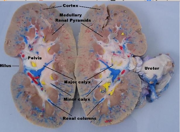 Label the Kidney - Anatomy Corner Label the Kidney. April 27, 2016 Quiz · kidney quiz. A = interlobar arteries and veins. B = renal artery. C = renal vein. D = ureter. E = renal pyramids