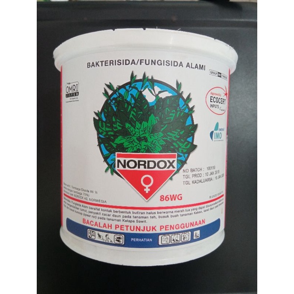 Nordox 86 Wg - Twk Partikel bahan aktif NORDOX 86 WG sangat optimal antara 1 - 5 mikron. minimal 80% terdiri dari partikel dibawah 2 mikron, pencakupan yang luas dan tahan cucian hujan. Dengan begitu dapat menghasilkan efektifitas yang tinggi dengan dosis yang rendah sehingga lebih ekonomis dan lebih dibandingkan fungisida Copper lainnya. Diproduksi oleh NORDOX ... PDF Safety Data Sheet Product Name: NORDOX 750 WG COPPER FUNGICIDE Other Means of Identification: Mixture Recommended Use of the Chemical and Restriction on Use: Agricultural fungicide and bactericide Details of Manufacturer or Importer: Nordox Australia Pty Ltd 27 Heinemann Road Wellcamp QLD 4350 Phone Number: 07 4639 2009 PDF Nordox 75 WG Label - Plant Food Company The per acre use rates for NORDOX 75 WG are applicable for dilute, concentrate and aerial sprays. Where dosage and/ or interval ranges are indicated, these may be adjusted according to disease conditions. For example, when conditions favor severe disease pressure, use the maximum rate and shortest spray interval. Do not apply less than the minimum NORDOX 75 WG Water Dispersible Granules (WG). Composition: Copper oxide: 75% w/w ... NORDOX 75 WG - MSDS ... info@efthymiadis.gr; +30 2310 56 86 56; Contact.